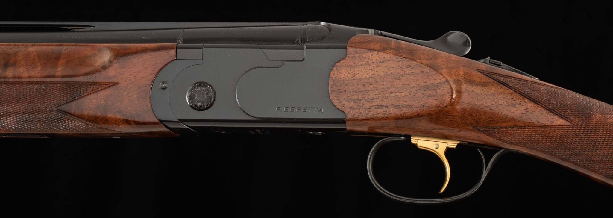 This Beretta Orivs Uplander has 99% factory blue, mirror bores, screw-in chokes, handsome jeweling on the monobloc barrel breech, and beautiful gold-colored adjustable trigger. There is a small blemish on the trigger guard, please see photos. Opening and closing the action lets you know this gun has had few rounds through it, and the tang closes well right of center. You’ll be hard pressed to find a prettier set of wood on a gun of this high quality, at this low price. The figure in the forearm and straight stock would be right at home on any custom gun, finished in a Purdey style leather covered pad. Â